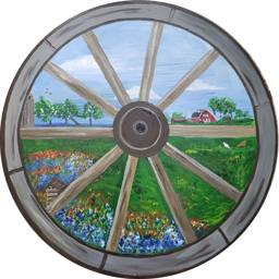 Wagon Wheel and Bluebonnets